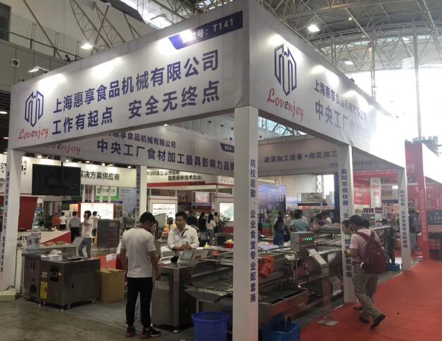 图片中的这个展台是位于上海的惠享食品机械公司,公司生产销售台湾切菜机,切肉机,洗菜机,包装机,以及食品加工厂和中央厨房的整体设计规划,是学校,机关单位食堂,食品厂,餐饮企业优秀的合作伙伴。分别在北京、西安、长春、厦门、青岛、武汉、南昌、长沙等设有经销机构,面对这样的一个在行业里有影响力的企业,在展台设计方面,要求上海展览公司从这家企业的自身出发,深入了解产品的特点和企业的文化,从而设计出具有企业特色的展台效果。